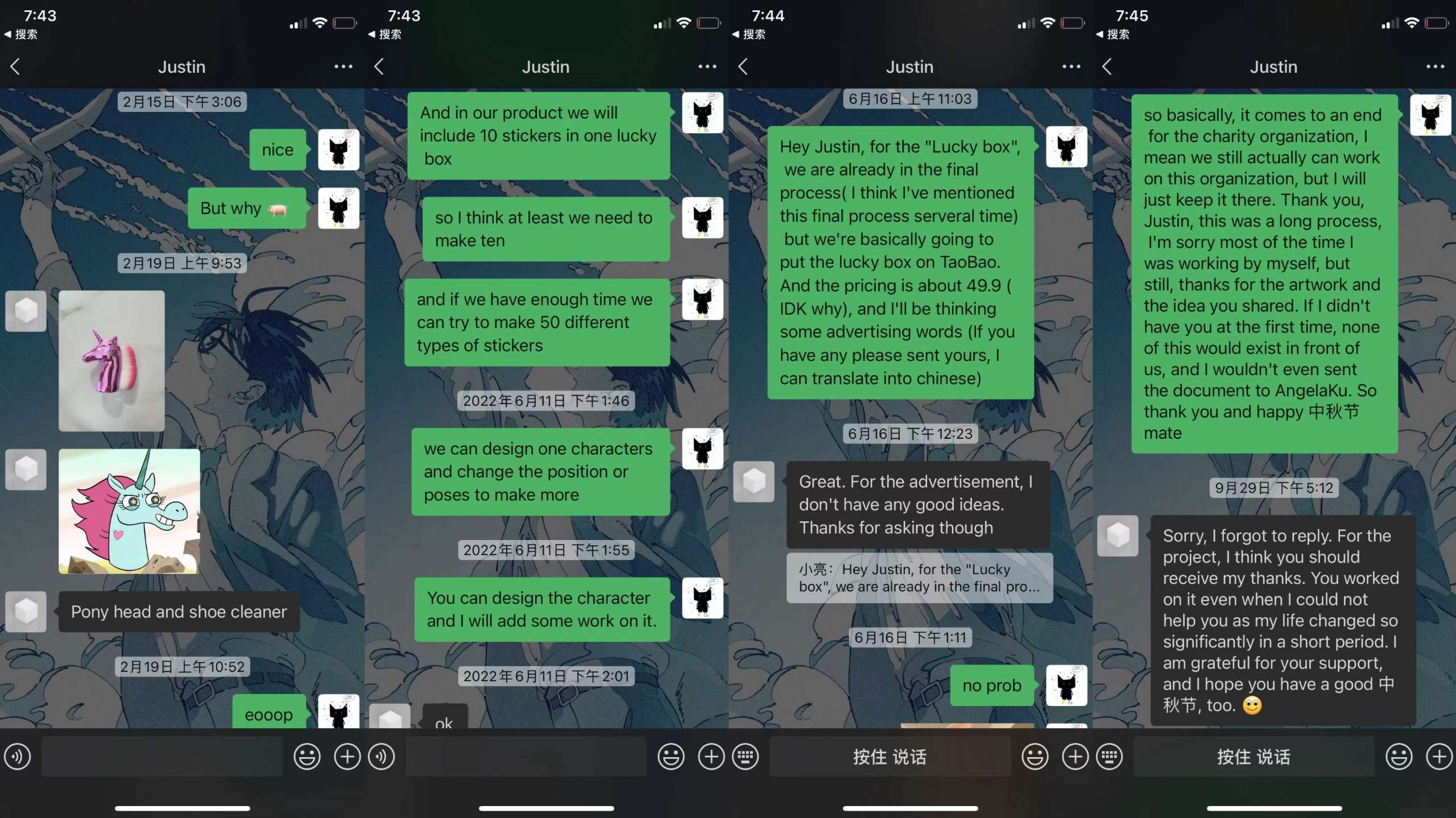 尽管困难重重,但同学们仍然在繁忙的课业之余积极推进项目,寻找解决方案。最终,西堀亮佑同学联系到青岛本地的文创生产商,由供应商提供网店账号和有资质的文创产品;由金缜序同学负责盲盒包装的设计。在向组织方提交计划方案的12个月后,“希望之盒”盲盒产品终于上线了!